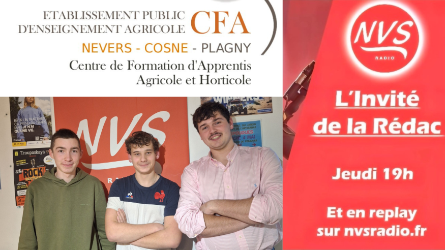 Jeudi 5 mars Nathan Devillers, Malone Chauveau et Nathan Mathieu, tous les trois élèves de premières au CFA de Challuy, étaient à nos micros. A cette occasion, ils sont venus présenter leurs parcours scolaires notamment les Bacs Pros CGEA (Conduite et Gestion de l'Entreprise Agricole) et AP (Aménagement Paysager)